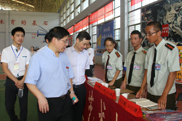 5日上午,校领导们在学工处、宣传部、校团委、现信中心等部门负责人的陪同下,实地查看了生活住宿条件就绪情况,深入体训馆迎新现场看望慰问新生、家长和工作人员并指导迎新工作。