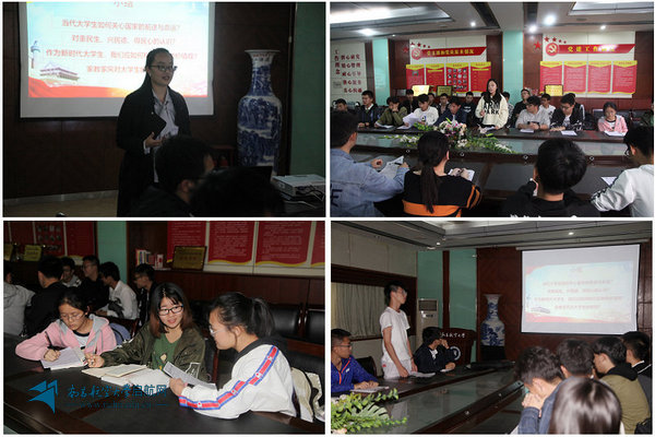 魏振涛同学首先表达了自己观点:“作为新时代的大学生,我们要将个人的发展与国家的前途、民族的命运紧密联系在一起,这是我在观看这个节目之后印象最深的一点。”而要做到这一点,他同样提出了自己的看法,即勤学、修德、明辩、笃实,号召同学们为实现中华民族伟大复兴的“中国梦”不懈奋斗