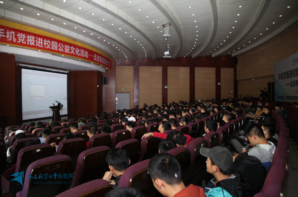启航网讯 11月9日,由江西省委宣传部、省委网信办、省教育厅、江西日报社联合举办的“手机党报进校园”文化活动走进南昌航空大学。我校党委副书记黄士安、江西手机报总编辑黄新阳出席活动并讲话,学校各单位(部门)宣传员及学生代表近300人参加,活动由校党委常委、宣传部长刘芝平主持。