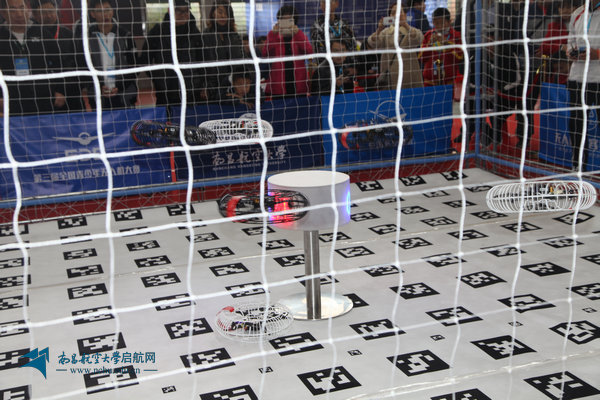 随后,由我校体育学院航模队带来的遥控室内PSP-D特技飞行表演精彩纷呈,给观众带来了震撼的视觉享受。上海歌尔泰克机器人公司的“小鸟飞飞”9机编队伴随着音乐翩翩起舞,获得了全场热烈的欢呼和掌声。