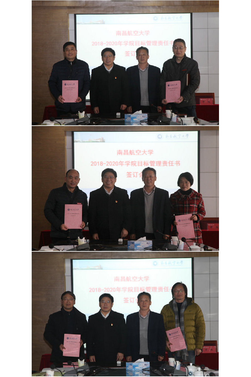 会上,郭杰忠、罗胜联与航空制造工程学院、经济管理学院、艺术与设计学院三个代表学院的党政负责人,分别签订了目标管理责任书。