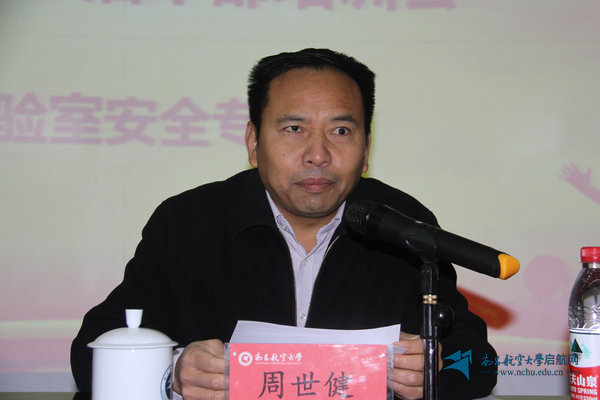 讲话中,周世健就实验室安全管理工作提出四点要求:一是各级高度重视、安全体系健全。学校负责宏观上的监管与督查,各单位必须建立由主要领导亲自抓、分管领导具体抓、各实验室负责人及其成员抓具体的层层落实责任体系。二是制度科学规范、措施合理有效。要及时制定完善符合自身实际的实验室安全管理制度,建立好各自突发安全事故的应急预案,让制度在各单位师生中一以贯之、“生根发芽”。三是安全重在预防、查漏及时补缺。大家要把安全教育常挂嘴边,加强日常的重点关注,建立日常的安全隐患排查机制,及时准确地排查一切可能引发安全事故的隐患。四是室内布置规范、日常管理到位。结合当前校园环境综合整治工作,各学院务必加强对实验室的环境综合整治与日常管理,消除安全隐患,给广大师生营造一片安全、整洁、美丽的校园环境。