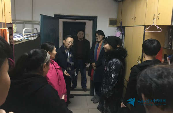 启航网讯 新年将至, 12月24日晚,新疆驻赣工作组教育协调工作小组组长曙合拉一行来到我校,与副校长何兴道、学工部(处)负责人等共同深入我校学生宿舍走访看望新疆籍学生,了解新疆籍少数民族学生的生活与学习情况。