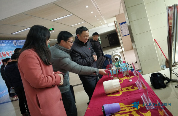 副校长何兴道现场观看学生的航空发动机作品及演示