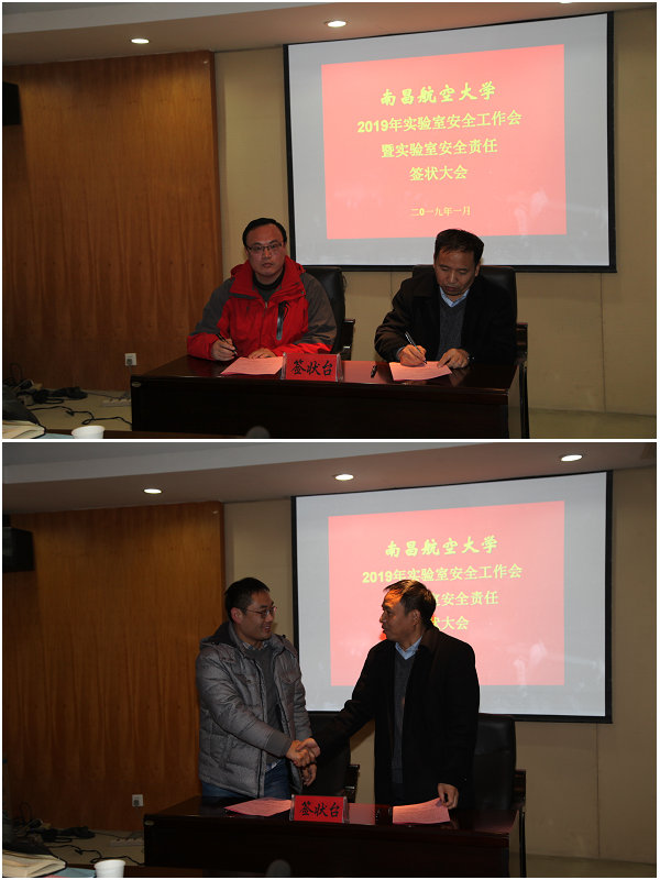 学校分别与各二级教学单位签订了《南昌航空大学2019年实验室安全责任状》