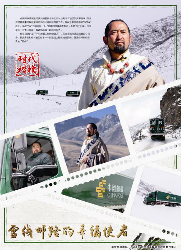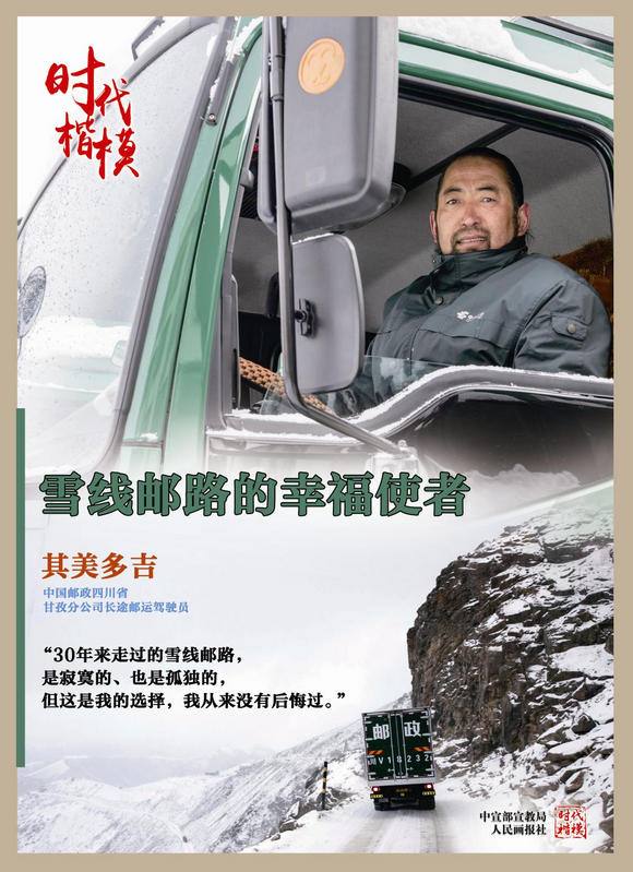 其美多吉是中国邮政集团公司四川省甘孜县邮政分公司邮车驾驶员,承担川藏邮路甘孜到德格段的邮运任务。他爱岗敬业,30年如一日,驾驶邮车在平均海拔3500米的雪线邮路上运送邮件,累计行驶里程140多万公里,没有发生一起责任事故。他意志坚强,遭遇歹徒袭击时挺身而出,用鲜血和生命守护邮件安全,身负重伤后坚持康复锻炼,以坚韧的毅力重新走上工作岗位。他珍爱团结,以螺丝钉精神紧紧钉在川藏线上,将来自党中央的声音、祖国四面八方的邮件送往雪域的各个角落,用真情奉献为促进藏区经济社会发展作出了积极贡献,被群众誉为“雪线邮路的幸福使者”。