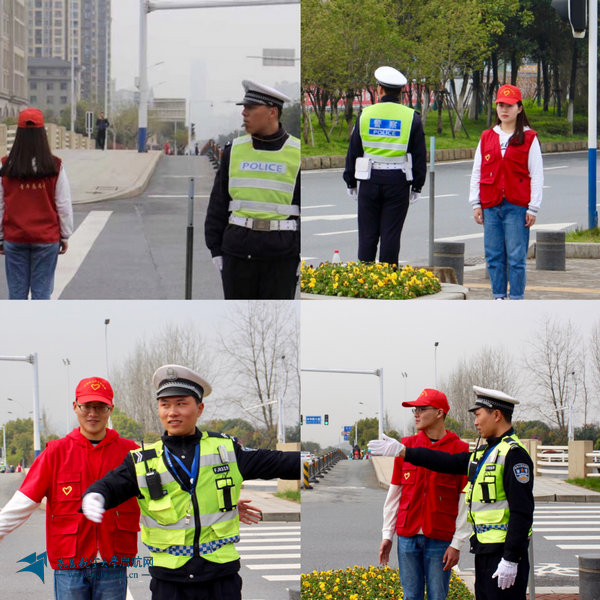 启航网讯 为积极推进平安校园建设,提高学生交通安全意识、法制意识,倡导安全文明的交通出行方式,营造文明礼让、和谐顺畅的道路交通环境,3月27日,学校保卫处、校团委与红谷滩大队红角洲中队在丰和大道、学府大道等路段开展文明交通志愿服务活动。