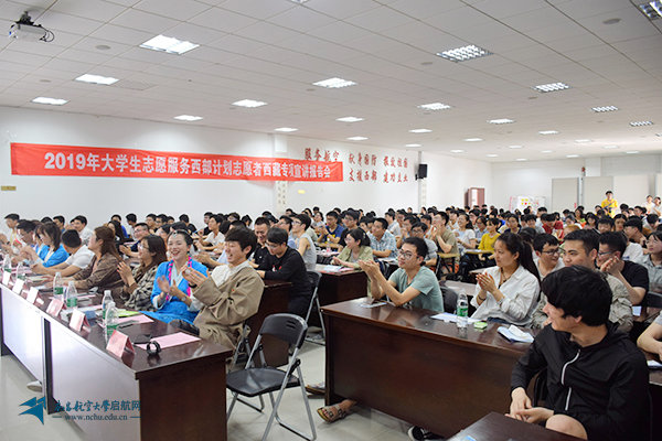 启航网讯 4月26日,2019年大学生志愿服务西部计划西藏专项志愿者招募宣讲会在大学生活动中心举行。西部计划西藏专项项目办副主任梁温馨,团省委志联部干部霍然,西部计划志愿者易渝杰、侯宇博、符嘉宣、马雪洁、赵慧君共同走进南昌航空大学,与我校应届毕业生代表及青年志愿者代表共350余人共畅西部梦想。