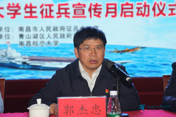会上,陆建刚宣布启动仪式开始。郭杰忠在致辞中对来校参加会议的南昌警备区各级领导和南昌市人民政府的领导表示热烈欢迎并介绍了学校办学历史,强调了当前高校征兵工作的重要意义,号召全校有志青年大学生积极响应国家号召,担当时代重任,踊跃参军入伍。