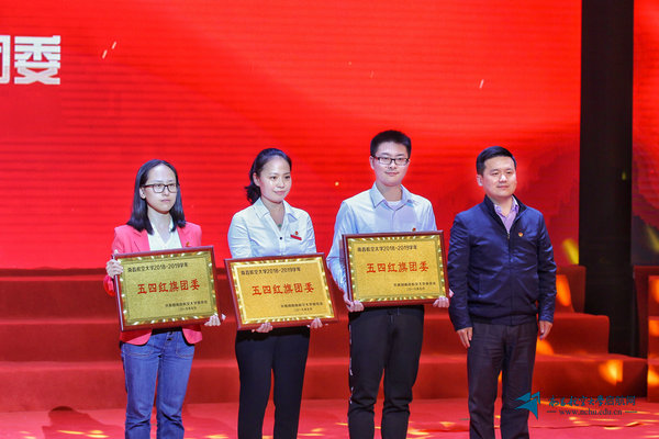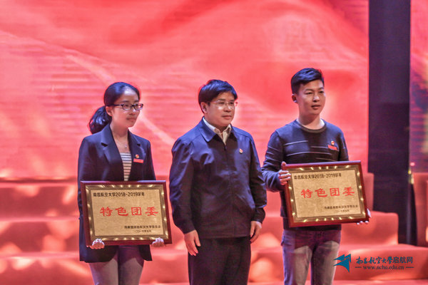活动期间,罗华、郭杰忠、黄士安、何兴道以及出席晚会的各职能部门负责同志,分别为在2018年度共青团工作中获得佳绩的单位和个人颁发奖牌和证书。2018年,经管学院朱丁亮同学荣获“全国优秀共青团员”荣誉称号;航制学院、测光学院、音乐学院团委荣获校级“五四红旗团委”称号;软件学院、经管学院团委荣获校级“特色团委”称号;材料学院刘昕、飞行器学院朱延平、经管学院胡从坤、体育学院冯振凯、文法学院江文锋荣获校级“优秀共青团干部(教师)”称号;材料学院“启航”团支部等18个团支部荣获校级“五四红旗团支部”称号;“百年五四风雷涌 古稀中华还少年”等10个主题团日活动荣获“十佳主题团日活动”称号;吴睿等88名同学荣获校级“优秀共青团干部(学生)”称号;张浩东等137名同学荣获校级“优秀共青团员”称号;胡伟、孙肇优、胡延丰、苏嘉雯、李星、刘志鑫同学荣获“大学生创新创业标兵”称号。