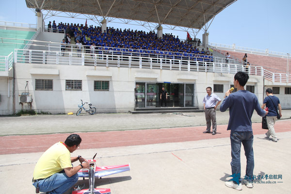 专业教师为中学生们进行航模飞行表演