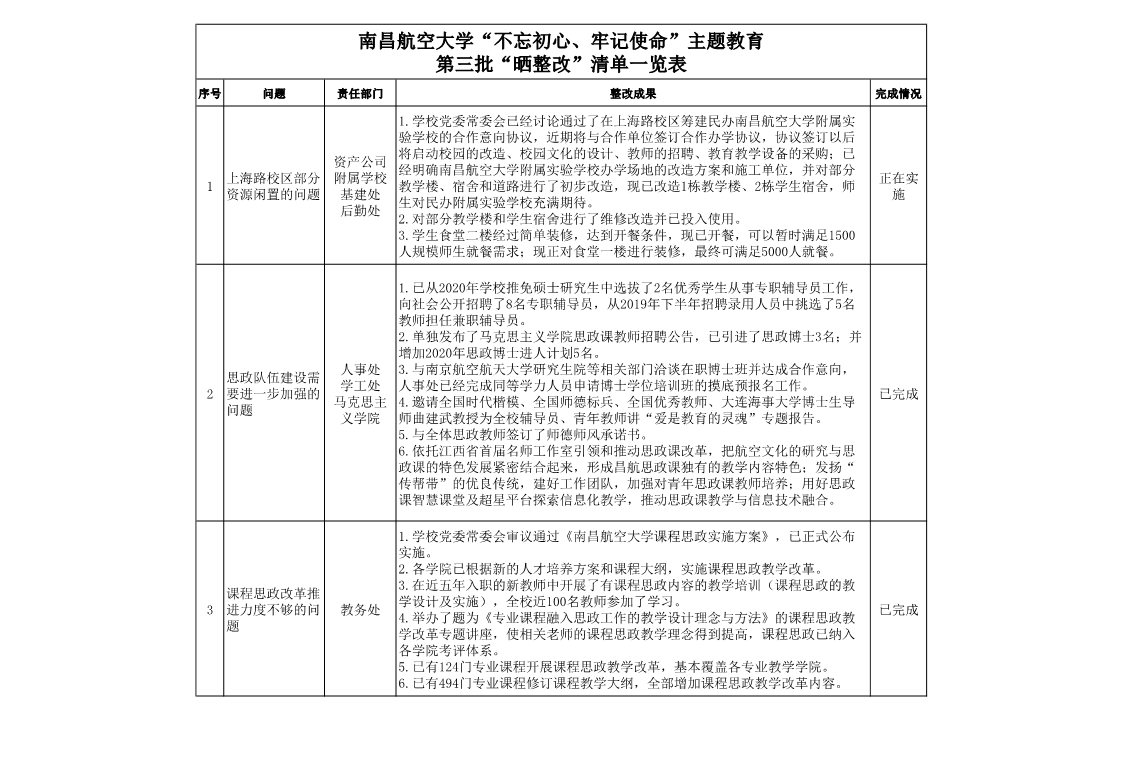 您的位置: 首页 >新闻中心>南航要闻>详细内容 南航要闻 【主题教育】南昌航空大学“不忘初心、牢记使命”主题教育第三批“晒整改”清单一览表 来源: 作者: 摄影: 发布时间:2019-11-25 浏览次数: 次 【字体:小 大】 【打印正文】