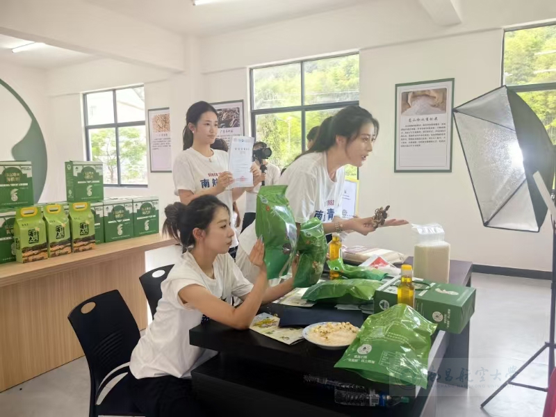当同学们的专业技能遇上田间地头的山野珍品,会碰撞出怎样的助农火花?实践团队给出了答案。在广昌县水南圩乡茶树菇基地的助农直播间,同学们化身为“蓝天主播”,将课堂所学精准转化为助农新动能。队员们巧妙融合航空术语与乡土特色,如“产品鲜度‘仪表盘满分’”“安全指标‘适航达标’”,为山货注入青春活力,直播吸引超1300人次观看,收获点赞6万余次。