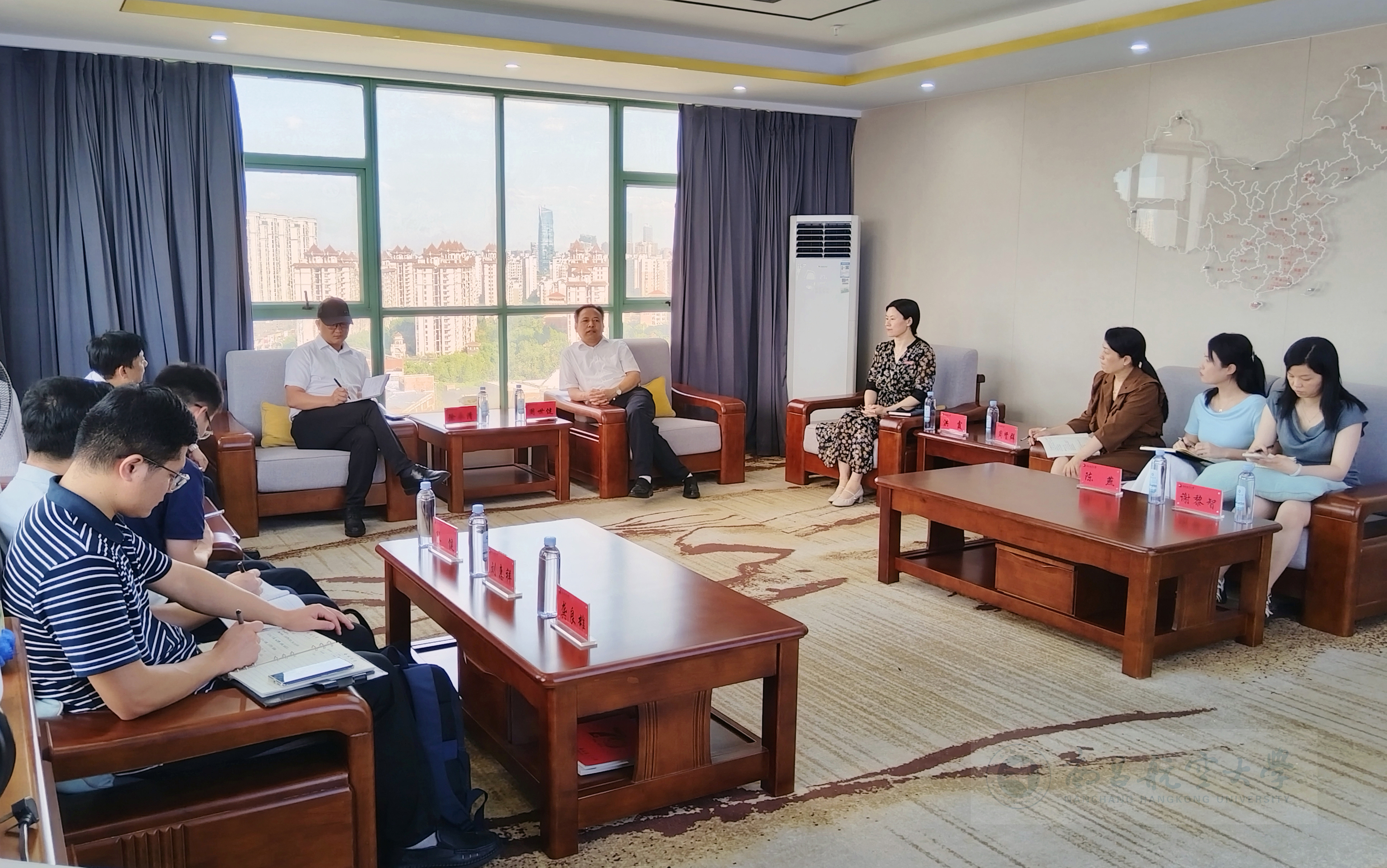 启航网讯 8月28日下午,南昌市城市规划设计研究总院集团有限公司党委副书记、总经理徐勇清一行到校进行校企合作调研交流。学校党委常委、副校长周世健与来宾座谈,发规处、科技处、校友办等部门负责人参加。