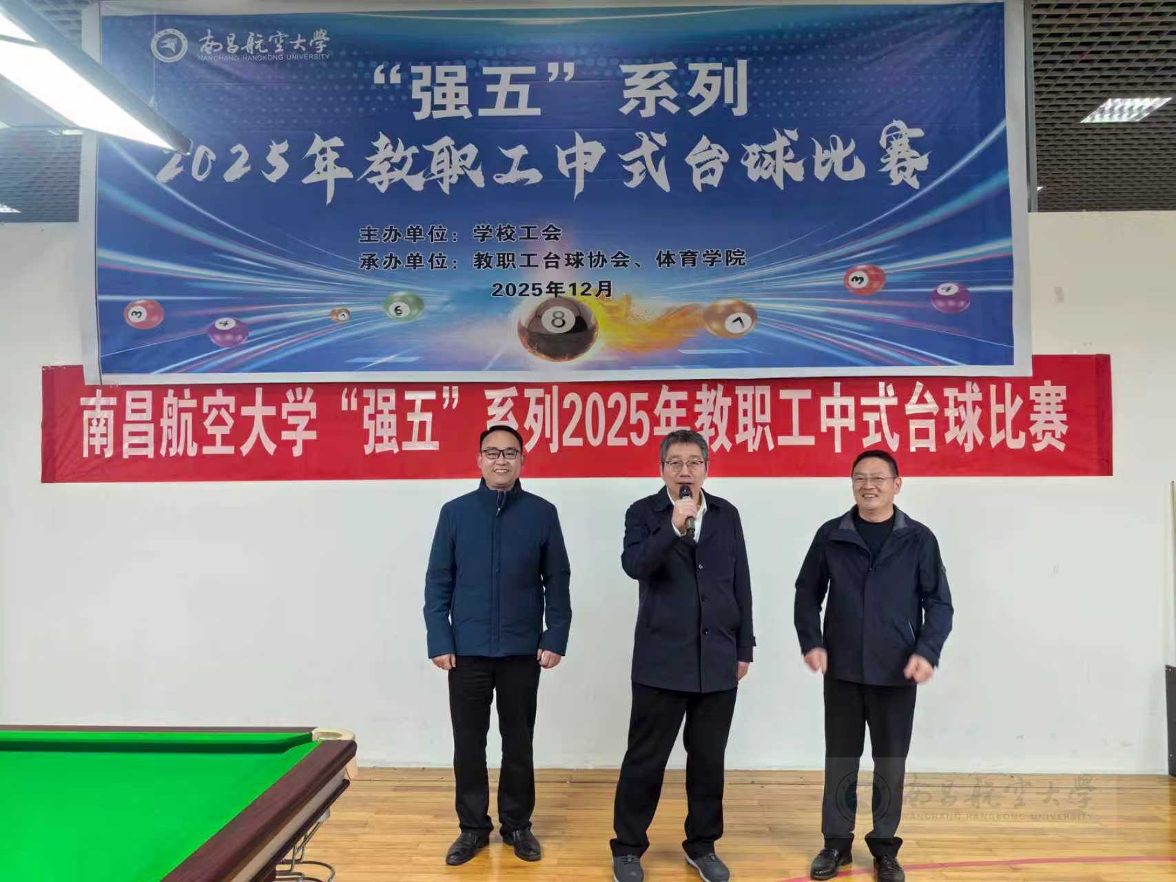 启航网讯 近日,由校工会主办,教职工台球协会、体育学院承办的“强五”系列2025年教职工中式台球比赛在校体训馆举办,学校党委常委、副校长郭正华出席开幕式并宣布比赛开始。