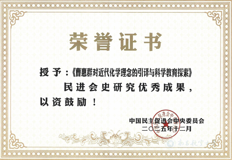 启航网讯 近日,民进中央2025年会史工作总结会在北京召开,会上表彰了88项全国会史优秀研究成果。学校民进基层委员会委员刘威、钟学明、杜娟、余鑫集体编撰的《曹惠群对近代化学理念的引译与科学教育探索》获评“民进会史研究优秀成果”。
