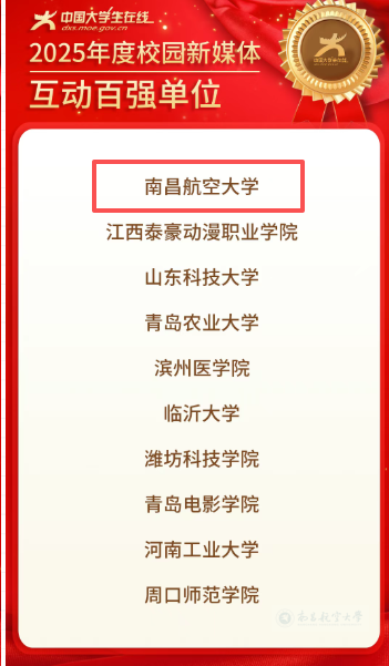 喜报!我校入选教育部中国大学生在线2025年度“校园新媒体互动百强单位”