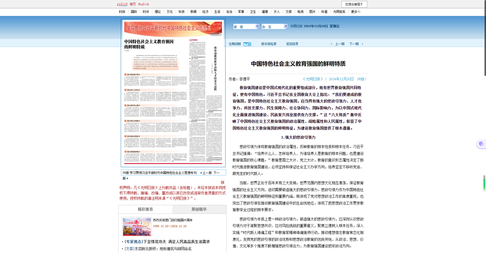 启航网讯:12月20日,我校党委书记李德平在《光明日报》06版发表题为《中国特色社会主义教育强国的鲜明特质》的署名文章。