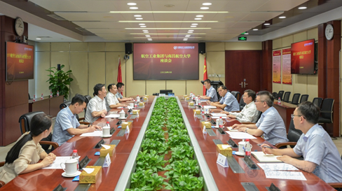 在中国航空发动机集团有限公司,总会计师、党组成员张博代表中国航发与李德平一行进行了友好会谈。他指出,南昌航空大学特色鲜明、学科优势突出,双方有着良好的合作基础。中国航发集团愿与学校在科研攻关、人才培养、前沿技术等方面密切交流合作,共同推进产学研深度融合,为建设航空强国、实现高水平科技自立自强贡献更大力量。