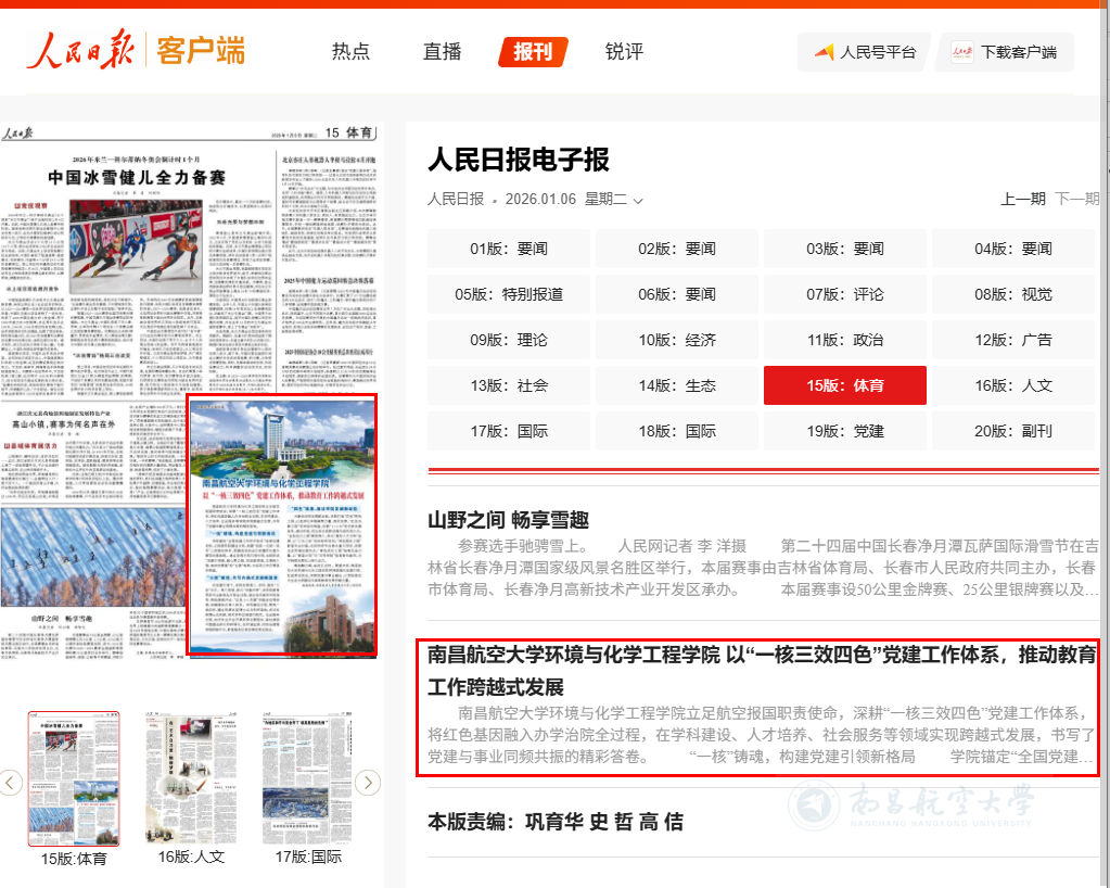启航网讯 我校环境与化学工程学院 以“一核三效四色”党建工作体系,推动教育工作跨越式发展。被《人民日报》15版报道。