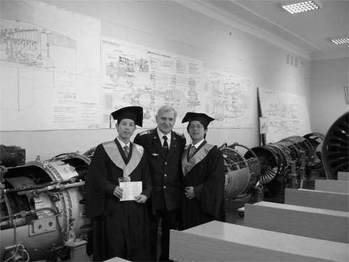忙忙碌碌中,时间在指缝中溜走,我便要选择导师了。可能是运气使然吧,我选到了自己最喜欢的导师,他的名字叫Гвоздецкий И.И。他是航空发动机教研室的功勋教授,对发动机结构、强度有比较深的造诣。在他和我第一次谈话时,我觉得他对中国学生有些偏见,但经过多次交流与谈话,才知道,他以前教过有中国人的英文授课班,班里有几个年纪很小的中国留学生很不务正业,学习成绩差,因而令Гвоздецкий И.И对中国留学生有所偏见。尽管他一开始拒绝当我的导师,我却依然勤奋努力。精诚所致,金石为开,我的执着还是让我争取到了机会。在他的教导下,经过近一年的时间,我终于完成了自己的论文,而且还获得了优异的成绩,这多少也让Гвоздецкий И.И对中国学生的看法有所好转。